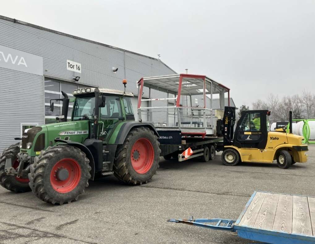 Bei diesem Transport brauchten wir eine Sonderbewilligung. Die Gondel vom kleinen Matterhorn wurde von uns zum sandstrahlen in die CWA nach Winznau transportiert.